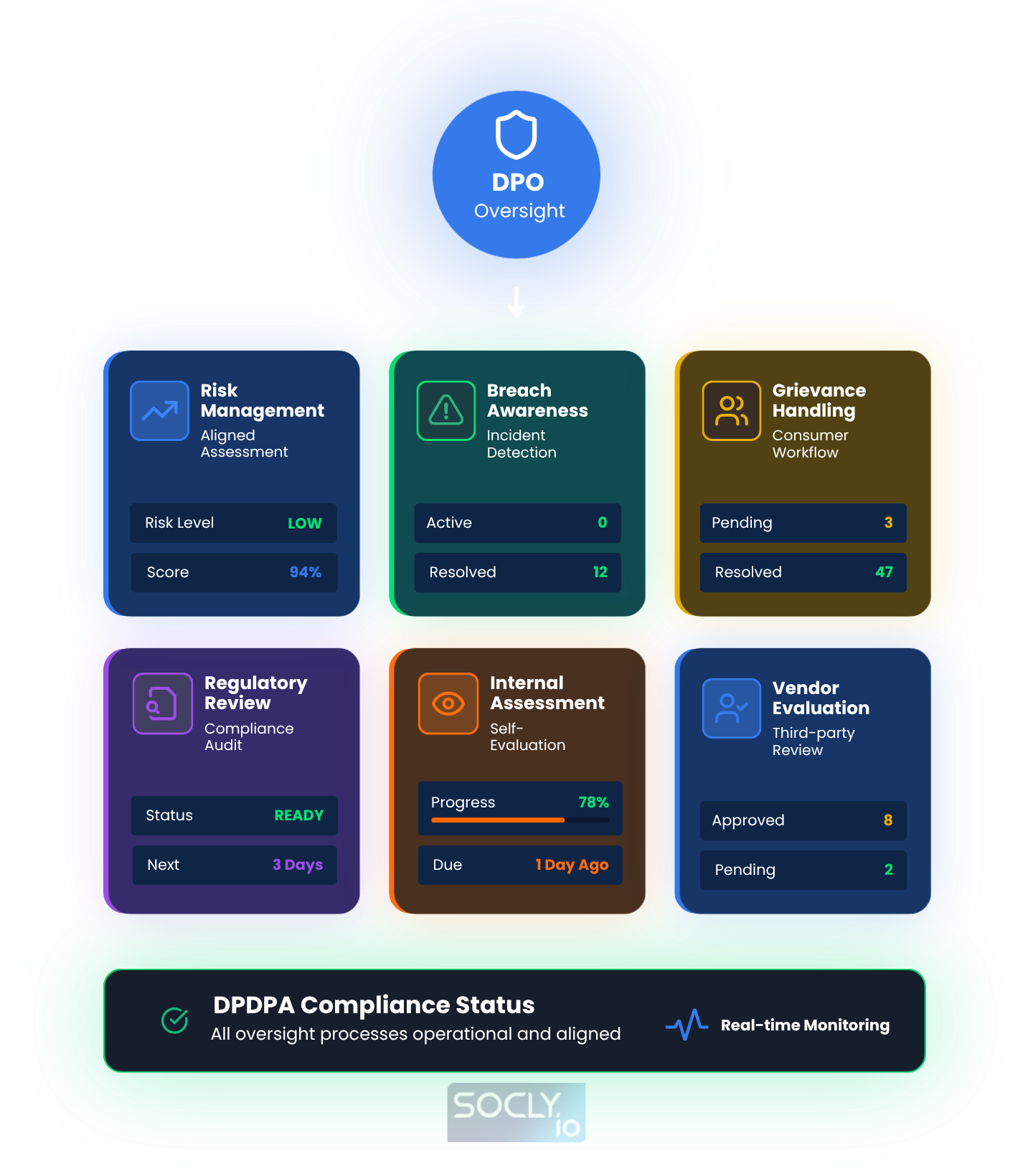 SOCLY.io turns DPDP obligations into clear, executable processes that align with modern business and technology environments, whether your organization operates primarily in India or processes Indian personal data globally.