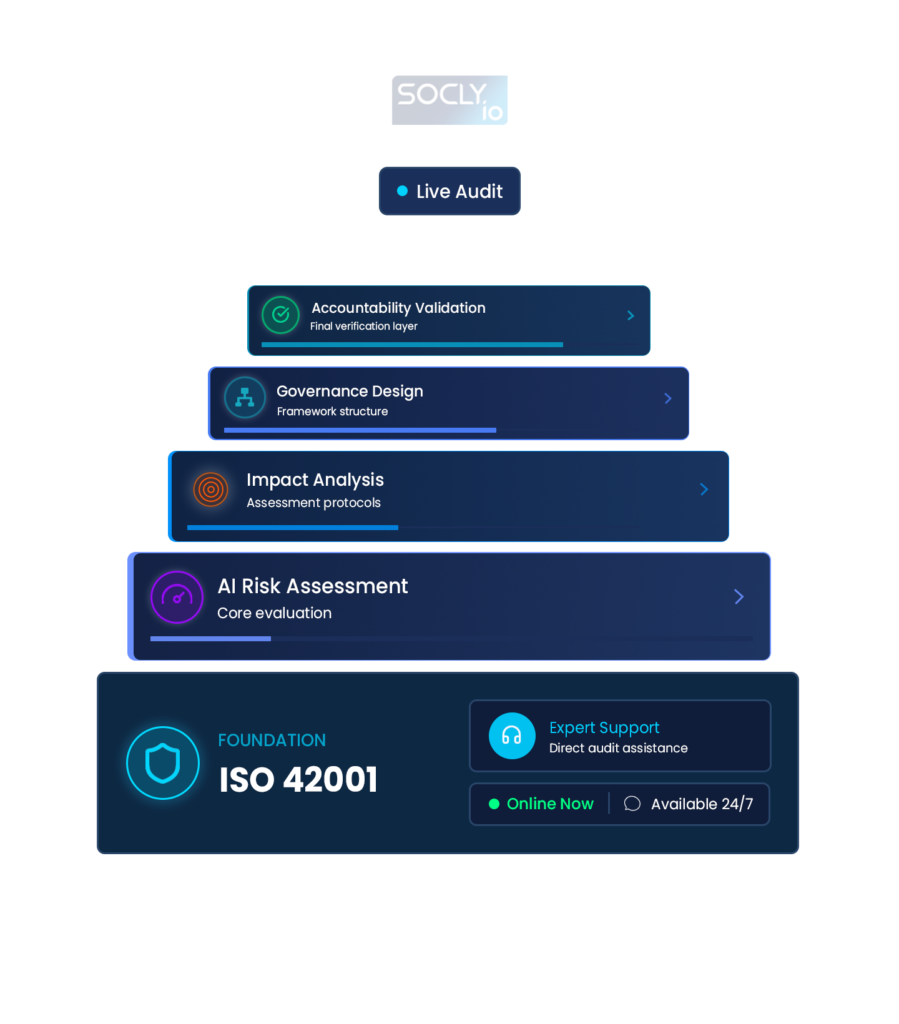 ISO/IEC 42001 is an international standard for establishing an Artificial Intelligence Management System (AIMS). An ISO 42001 certification audit evaluates how organizations govern AI systems through structured AI risk management, transparency controls, and lifecycle oversight of machine learning models. Certification by an accredited body validates responsible AI governance, algorithmic accountability, and the organization’s ability to manage AI risks across development and deployment.